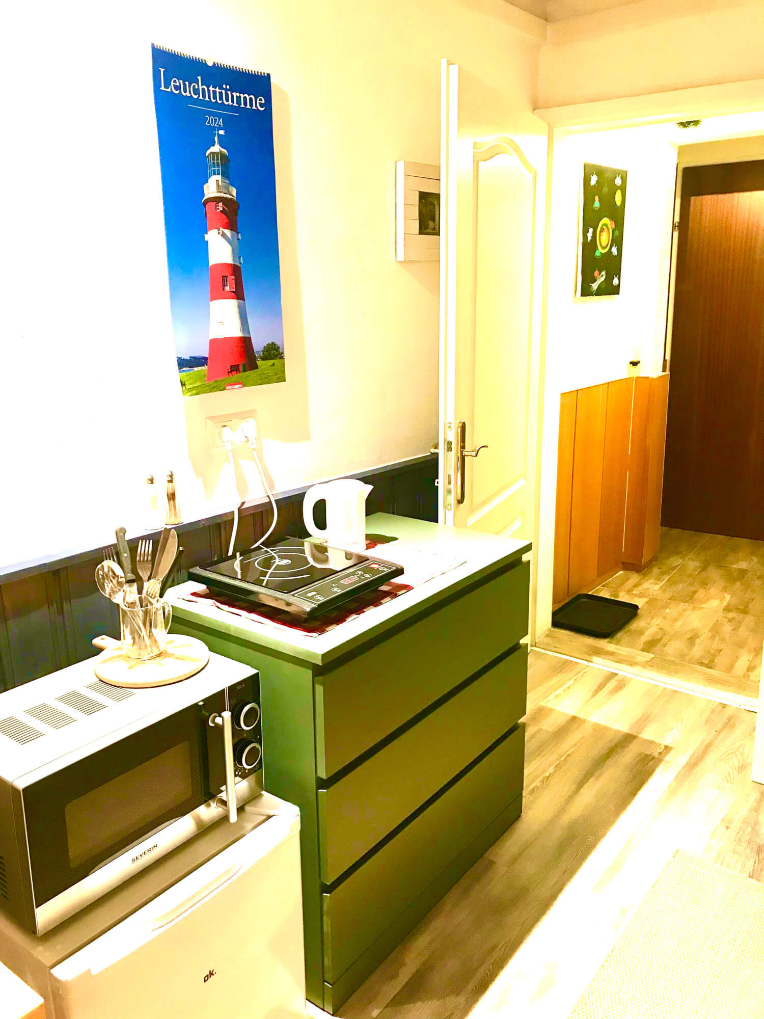 Die möblierten Appartements und Privatzimmer verfügen über vollständig ausgestattete Küchen, bezw. Kochmöglichkeiten mit Kühlschrank, Induktionskochplatten, Kaffeemaschine (wahlweise Kapsel- oder Filter), Mikrowelle. Wasserkocher etc., SAT TV, WLAN, sowie Dusche oder Badewanne/ WC. Außerdem sind sie mit Bettwäsche, Hand- und Badetüchern ausgestattet.